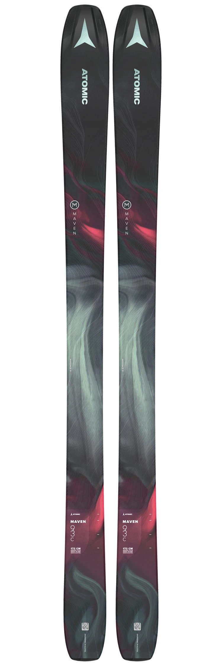 Maven est une gamme de ski all mountain pour femme de la marque Atomic. Le modèle Maven 93 C, avec ses 93 mm au patin, est le modèle le plus large de la série. Il dispose de la construction OMatic qui combine le bois de peuplier à la fibre de verre pour procurer un équilibre entre stabilité, maniabilité et tolérance. Le Maven 93 C est également équipé du Carbon Backbone, un insert en carbone qui décuple sa puissance sans pour autant alourdir outre mesure le ski, car le carbone est une des matières qui offre le meilleur rapport poids/solidité. Le profil cambre classique avec double rocker de 20 % à l’avant et 10 % à l’arrière favorise une très bonne flottabilité dans les neiges fraîches et profondes que vous trouverez en dehors des pistes. Sa spatule travaillée avec la construction HRZN Tech est plus large, facilitant la déjauge en poudreuse. S’il est résolument tourné vers le hors-piste / bord de piste, le Maven 93 C garde une belle skiabilité sur piste, avec une tenue de carre solide sur neige dure.